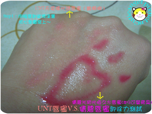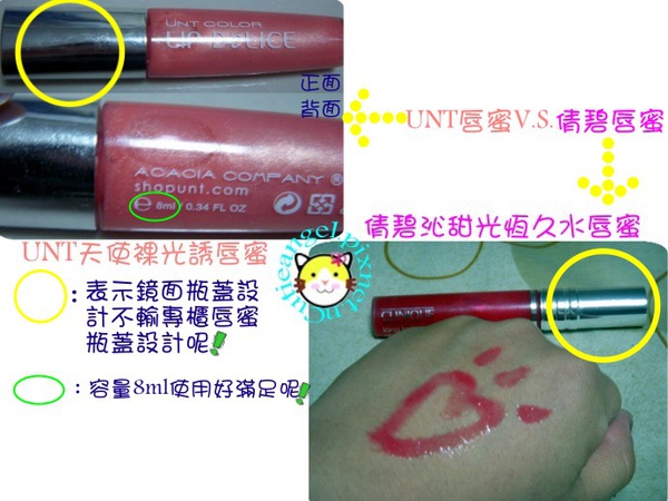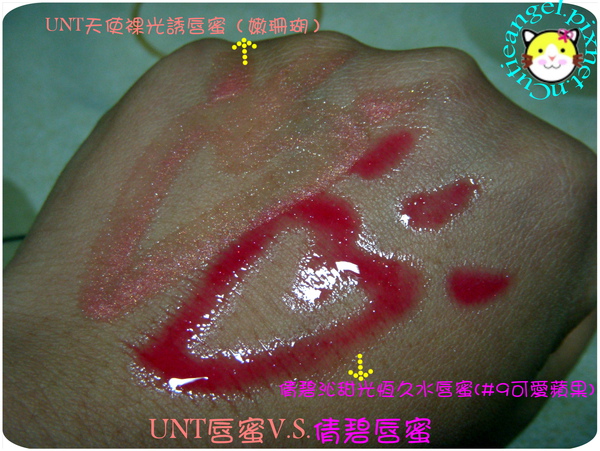 UNT天使裸光誘唇蜜較倩碧沁甜光恆久水唇蜜容易卸除