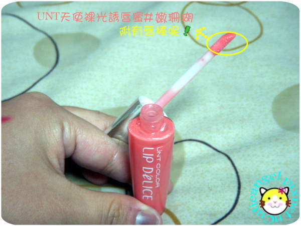 旋轉開UNT天使裸光誘唇蜜瓶蓋,唇蜜附有唇棒,值得嘉許一番呢