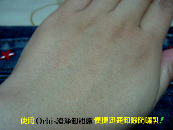 最後,使用他牌卸妝油稍加搓揉之後,終於卸除手背上持久型彩妝品,但手背已經紅通通,泛紅光了!畢竟Orbis澄淨卸妝露非專門卸除眼唇卸妝液,個人建議持久型睫毛膏、眼線液或眼影等彩妝品使用眼唇卸妝液較易卸除乾淨呢